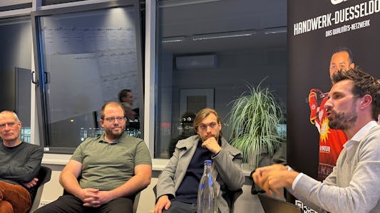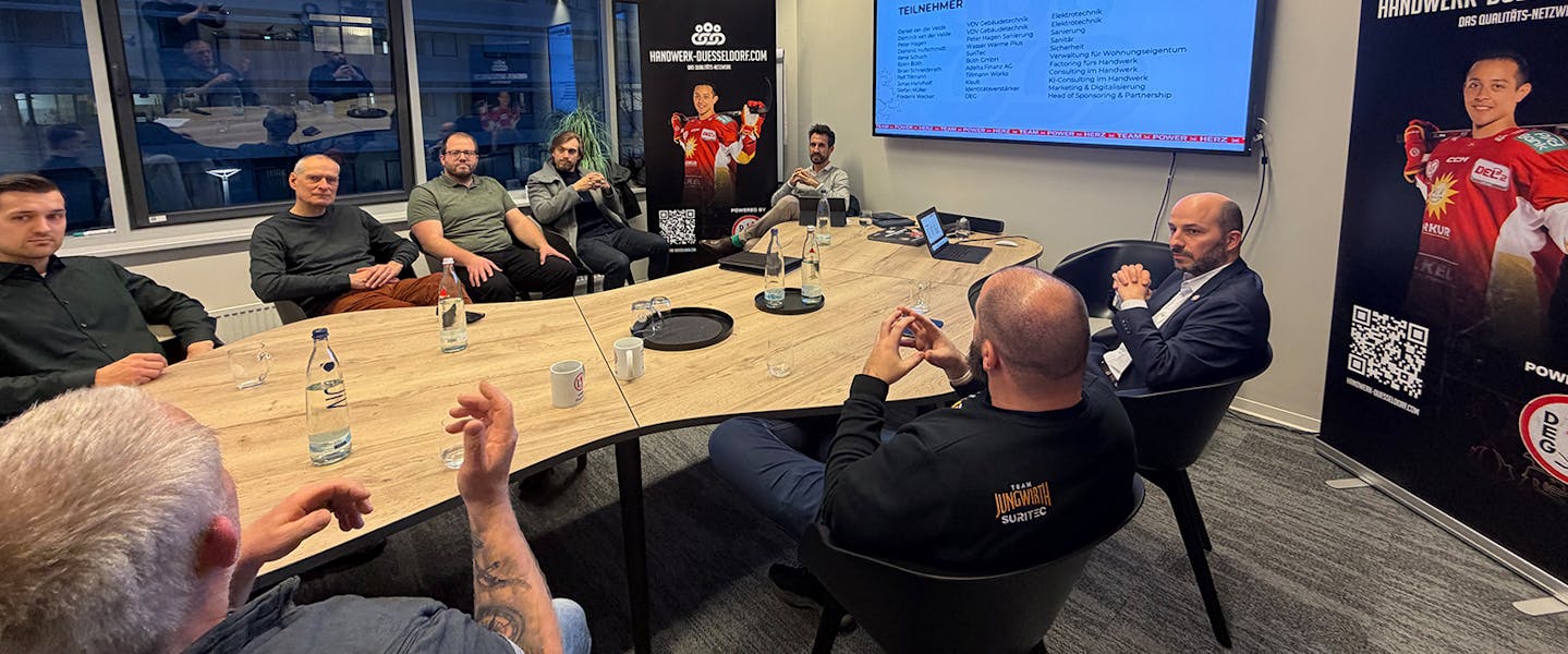 Düsseldorf, 6. Februar 2026 – Das Netzwerktreffen „Handwerk Düsseldorf“ fand am 6. Februar 2026 powered by DEG Eishockey statt. Gastgeber der Veranstaltung war die Düsseldorfer EG, in deren Räumlichkeiten der Geschäftsstelle das Treffen durchgeführt wurde. Ziel der Veranstaltung war der fachliche Austausch von Handwerksbetrieben und Dienstleistern aus unterschiedlichen Gewerken sowie die Auseinandersetzung mit aktuellen Zukunftsthemen des Handwerks.